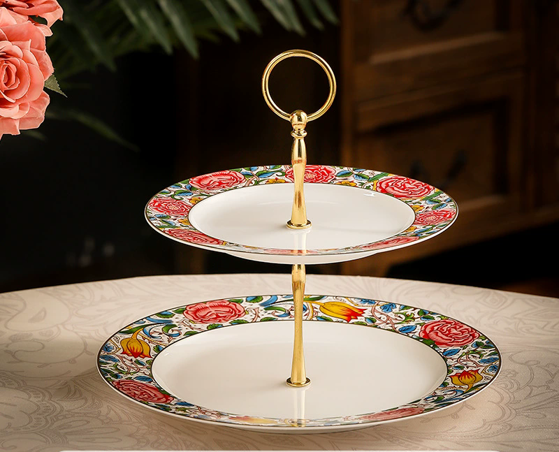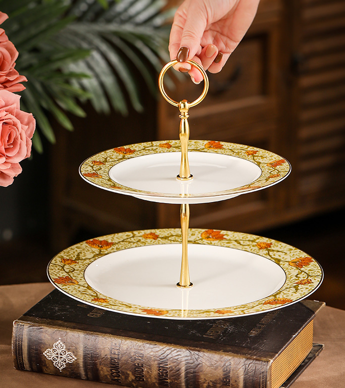 Plato de Pastel de Porcelana de 2 Niveles, Estilo Británico, para Té de la Tarde y Uso Doméstico