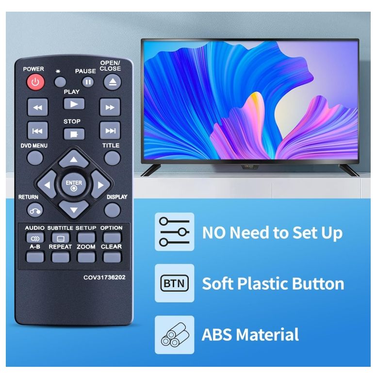 Nuevo Control Remoto de Repuesto COV31736202 para Reproductor de DVD LG, Control Remoto de Plástico con Código Variable/Fijo para DVD LG