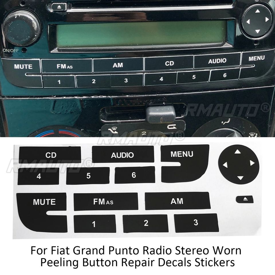 Pegatinas de Repuesto para Botones de Radio de Auto, para Fiat Grand Punto, Reparación de Botones Desgastados o Despegados, Color Negro