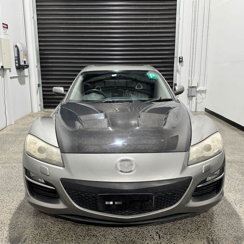Nueva cubierta delantera de motor de fibra de carbono para accesorio de capó Mazda RX8