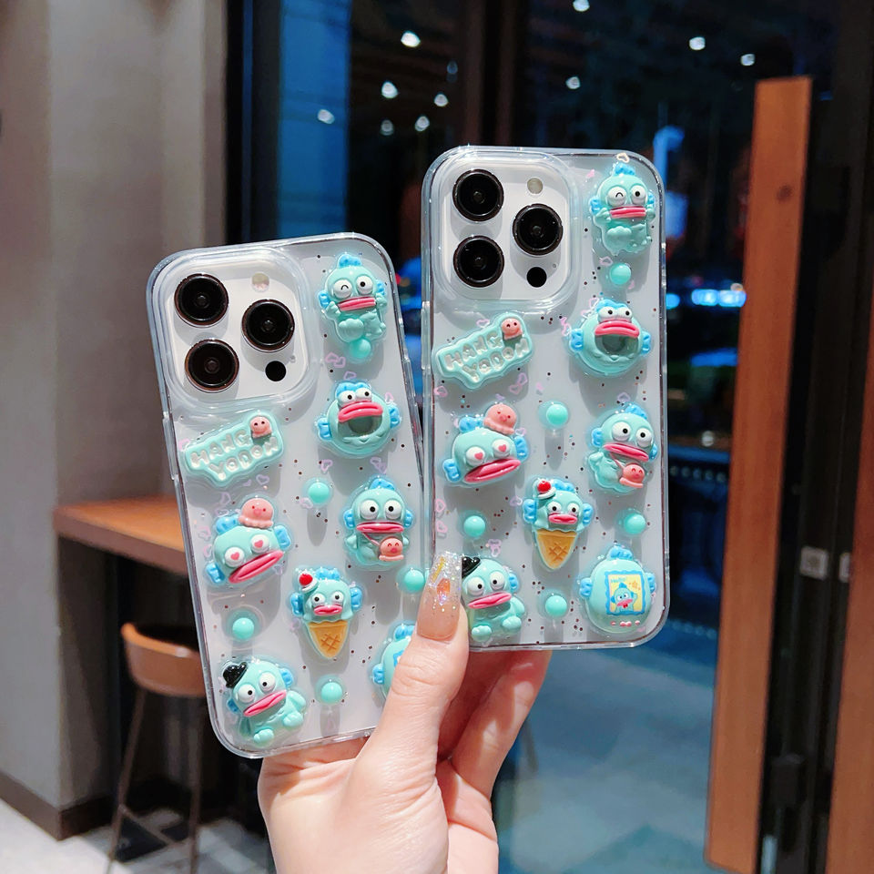 Nueva funda de teléfono absorbente de golpes anticaída transparente 3D de dibujos animados para iPhone 12 13 14 15 Pro Max con lindo patrón de peces