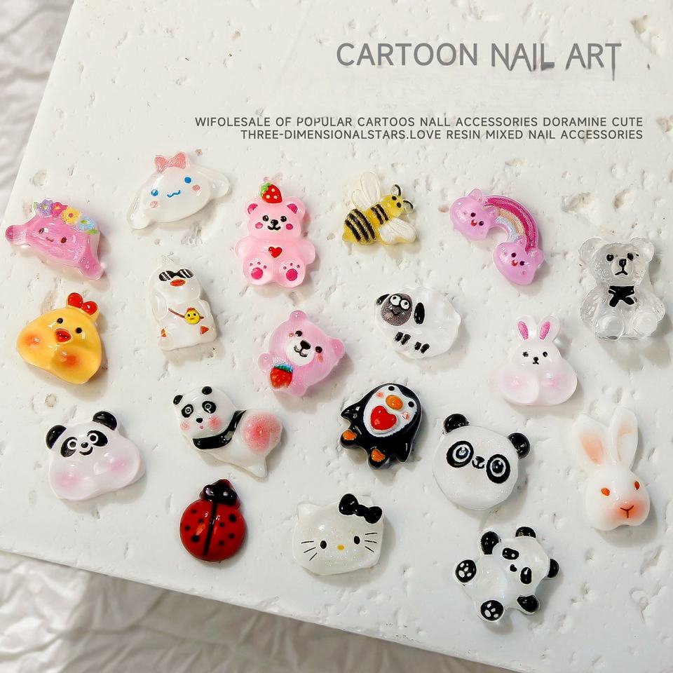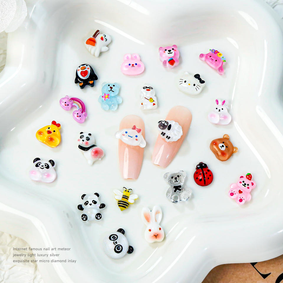 Nueva imagen de animal de dibujos animados accesorios de uñas lindo Oso de fresa conejo Panda decoración de uñas