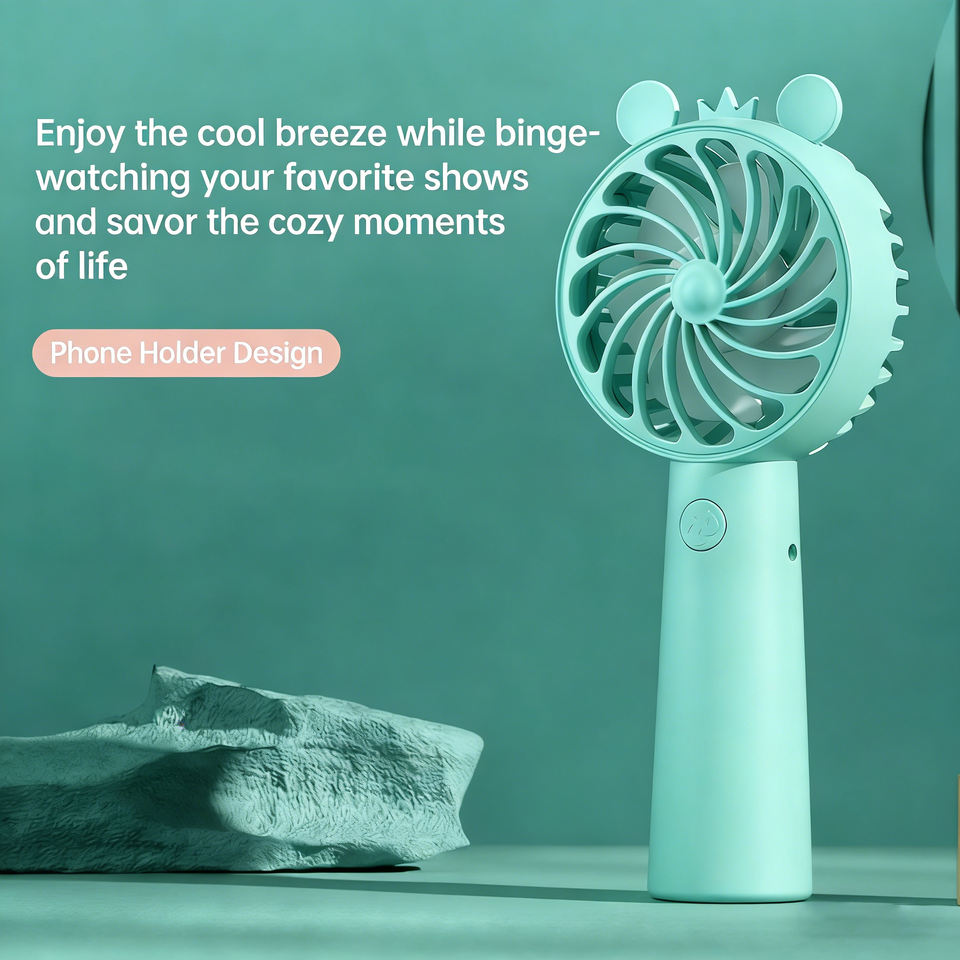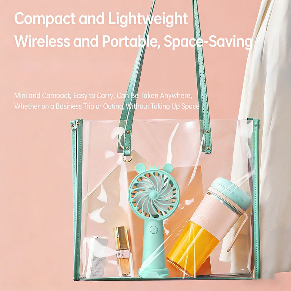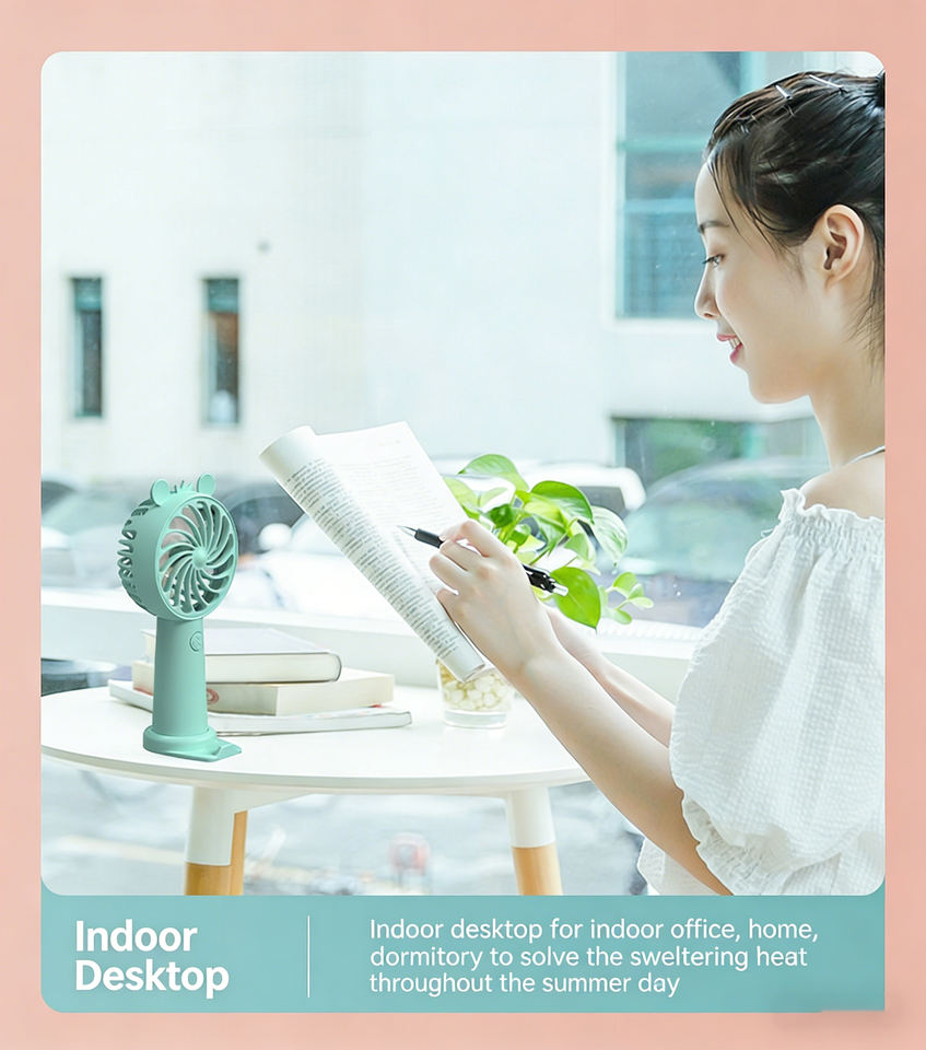 Nuevo Ventilador de Mano Mini con Diseño de Dibujos Animados, Recargable por USB, Portátil, con Soporte de Escritorio para Dormitorio