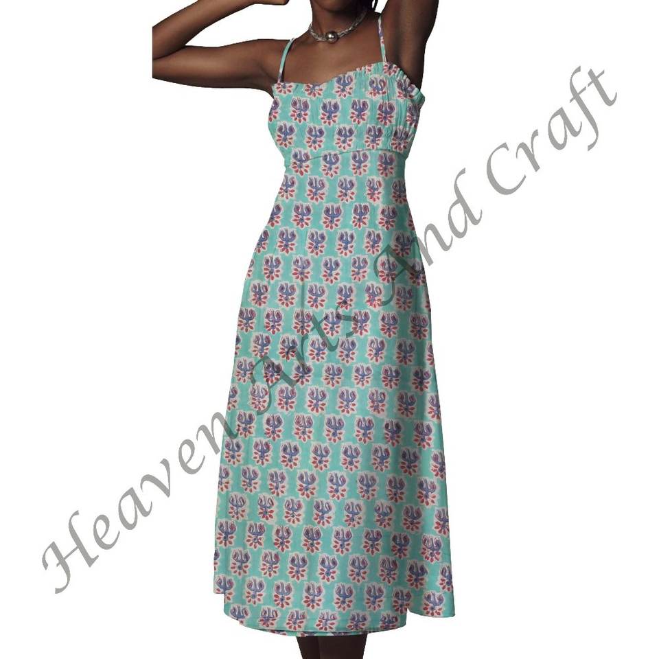 Número de Modelo:Hand Block Printed Spaghetti Strap Dress