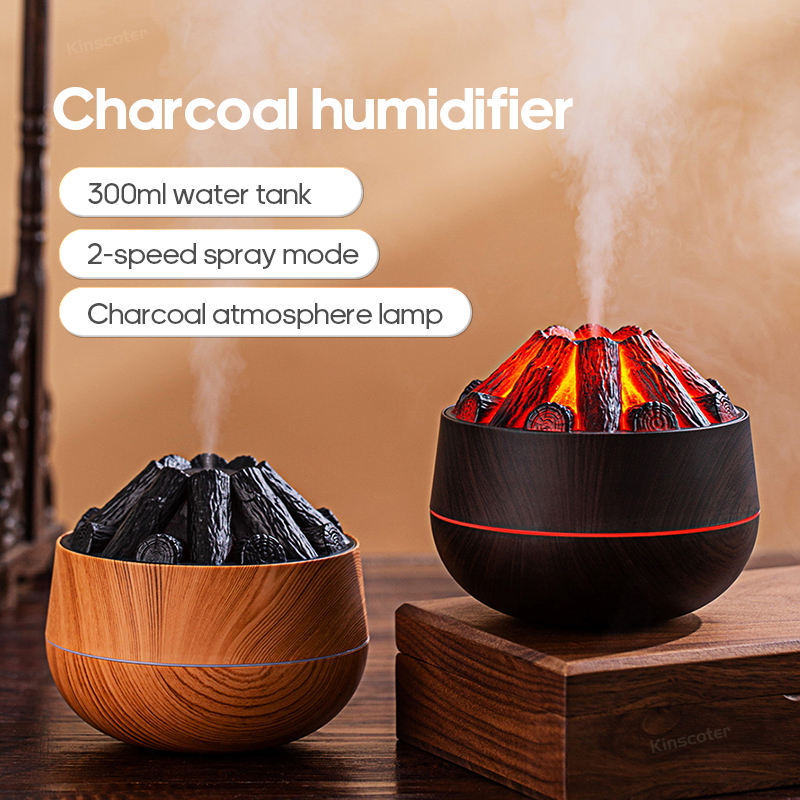 Nuevo humidificador de carbón para el hogar, Pequeño, portátil, grande, capacidad 300ML, humidificador de escritorio USB, humidificador de aire de fuego de carbón Artificial