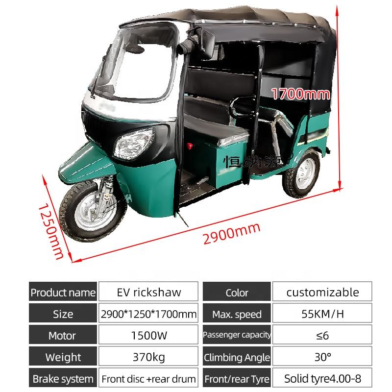 Nuevo Triciclo Eléctrico Económico Toto Rickshaw de 72V 1500W para 6 Pasajeros, Triciclo de Carga de Tres Ruedas para Plantas de Manufactura