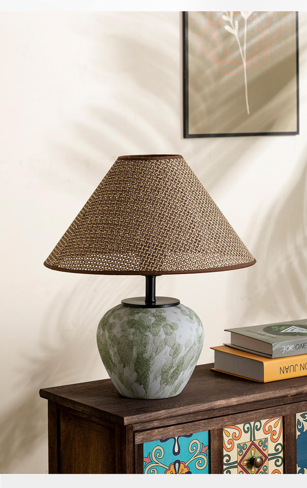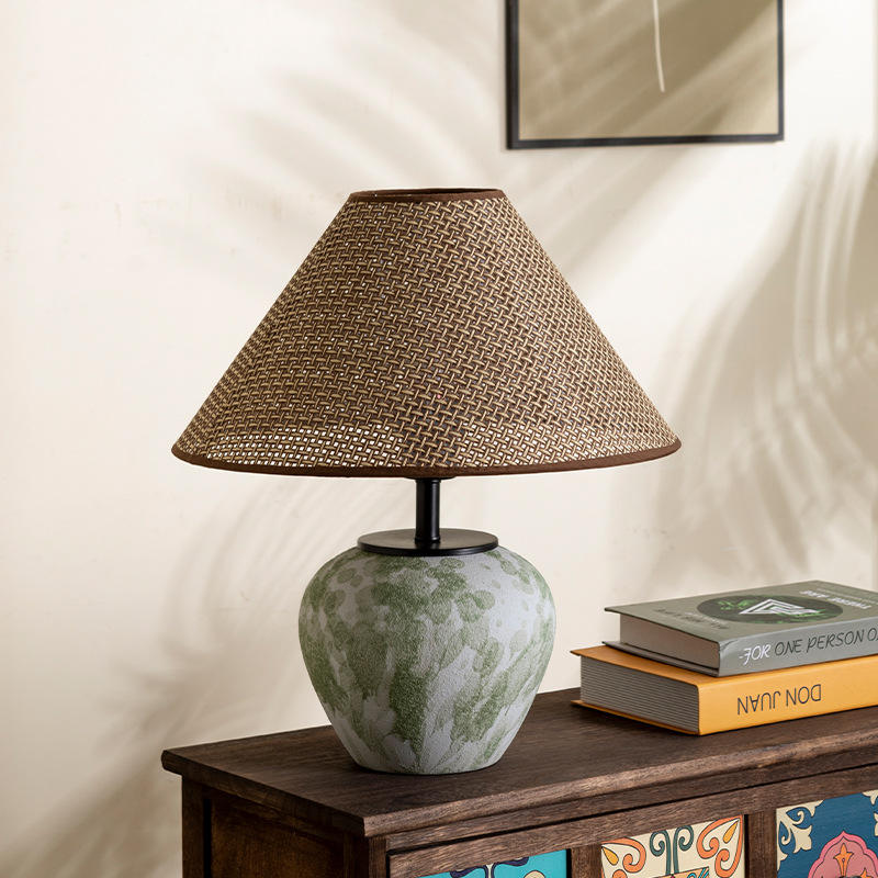 Nueva lámpara de mesa de cerámica Retro de estilo chino, luz nocturna para sala de estar, estudio, Hotel, sala de juntas, Vela decorativa de ambiente