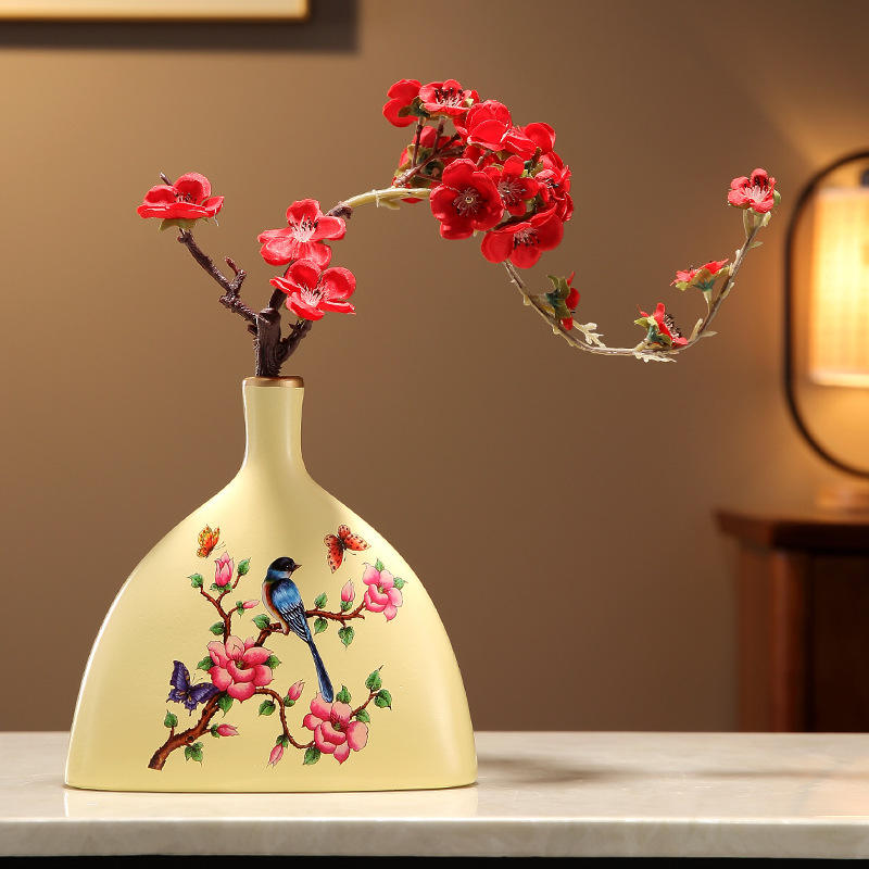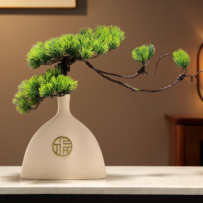 Nuevo chino Bienvenido Pino Flor de ciruelo Zen Estilo antiguo Resina epoxi Jarrón esculpido Ornamento para el hogar Sala de estar Gabinete de vino