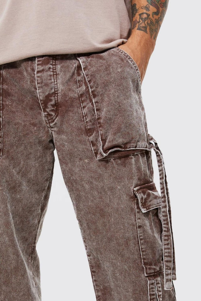 Nuevos detalles de la correa de lavado ácido de Color chocolate, pantalones de pana con bolsillos Cargo holgados para hombres, pantalones vaqueros personalizados de alta calidad para hombres, OEM