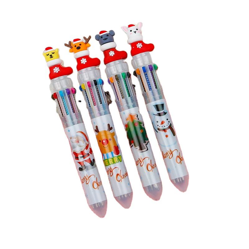 Nueva cabeza de dibujos animados de Navidad Santa Claus Elk prensa multicolor Pluma de libro mayor creativa Prensa de 6 colores Bolígrafo