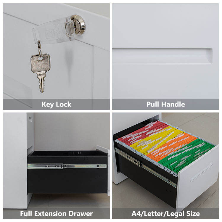 Archivador de Oficina de Acero de Estilo Moderno con 2 Cajones Laterales Blancos para Uso Comercial, Escuela o Taller