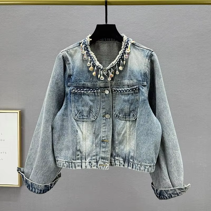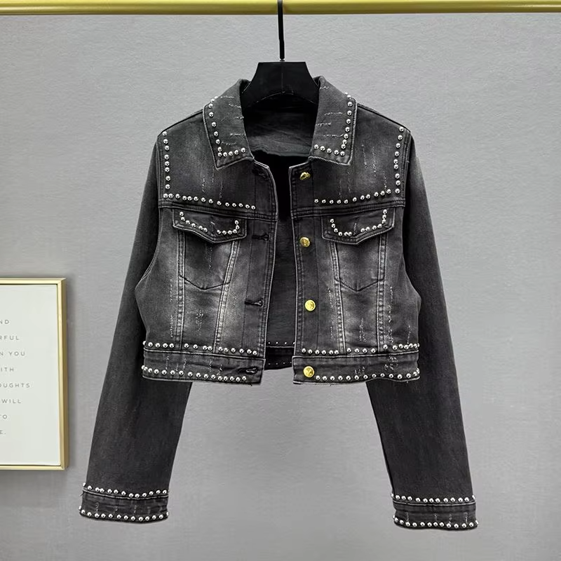 Chaqueta Vaquera Corta Vintage para Mujer, Diseño Clásico con Hebillas Metálicas, Lavada y Transpirable, para Otoño, Invierno y Verano
