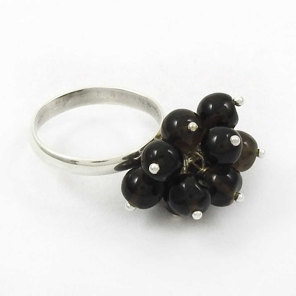 Nuevo Anillo Estilo Cluster con Múltiples Gemas de Cuarzo Ahumado Natural, Plata de Ley 925, Anillo Boho de Compromiso Certificado