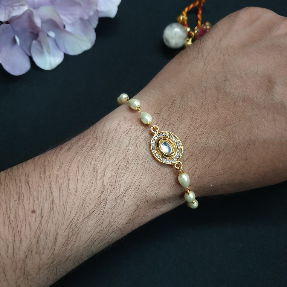 Nueva colección 2025 hermoso Rakhi para Raksha Bandhan festivo hecho a mano Kundan perla Rakhi buena calidad hilo y pulsera de cuentas
