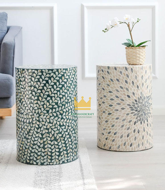 Nueva Colección, Precio Económico, Taburete de Nácar, Mesa Auxiliar con Incrustaciones, Mueble Multifuncional Decorativo para Sala de Estar, Hecho a Mano en Vietnam