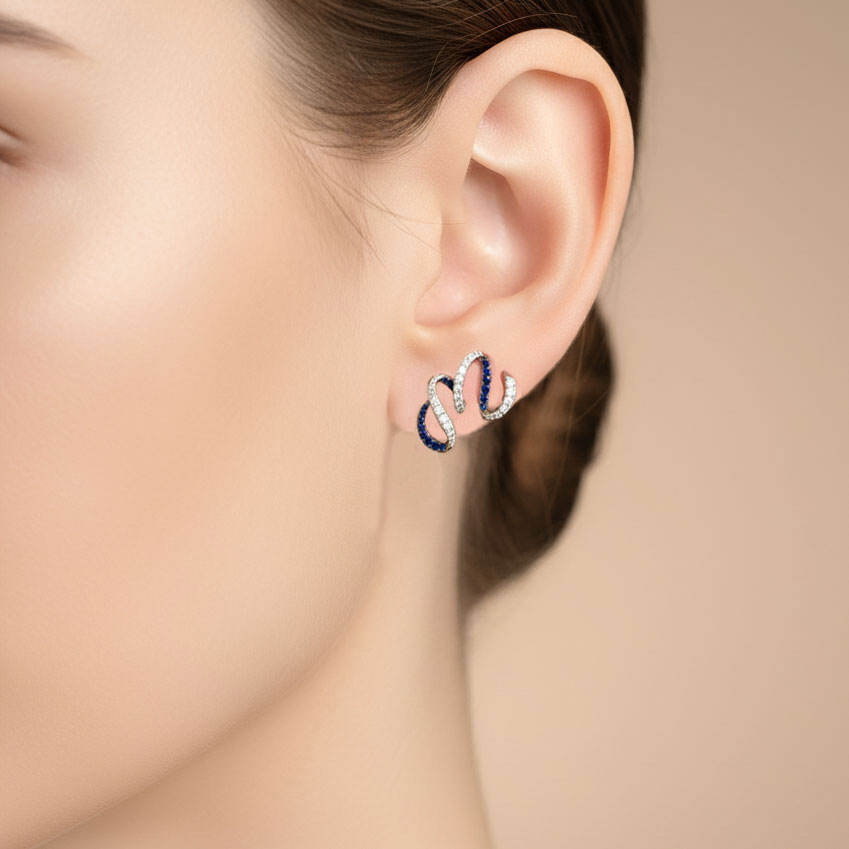 Nueva Colección, Diseño Curvo, Oro Blanco Sólido de 18K, Diamantes Naturales, Piedras Preciosas Naturales, Aretes de Zafiro para Mujer, Uso Diario