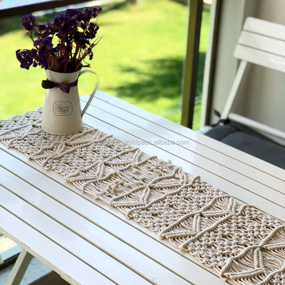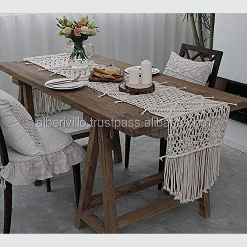 Nueva colección Diseño de camino de mesa de macramé de algodón Camino de mesa de macramé de estilo bohemio Camino decorativo de la India