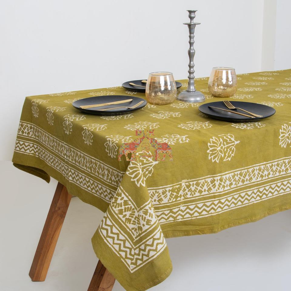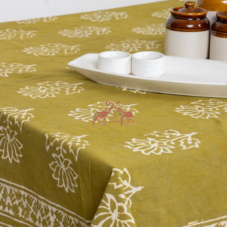 Nueva Colección de Manteles de Algodón Orgánico Hechos a Mano con Estampado Floral de Loto Dabu para Mesa de Comedor