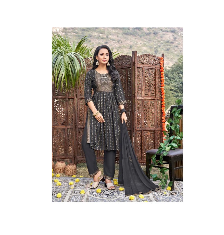 Tela con bordado pesado de Reyon para mujer, nueva colección, Kurti con Dupatta para Festival y ropa de fiesta, precio al por mayor