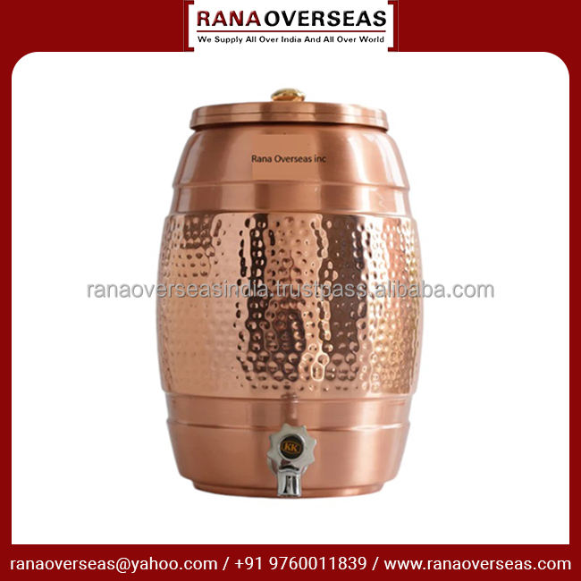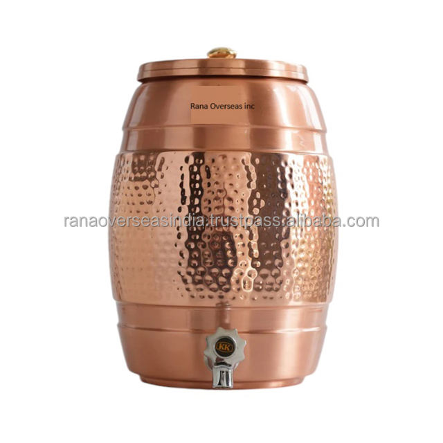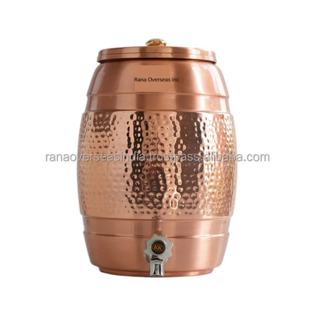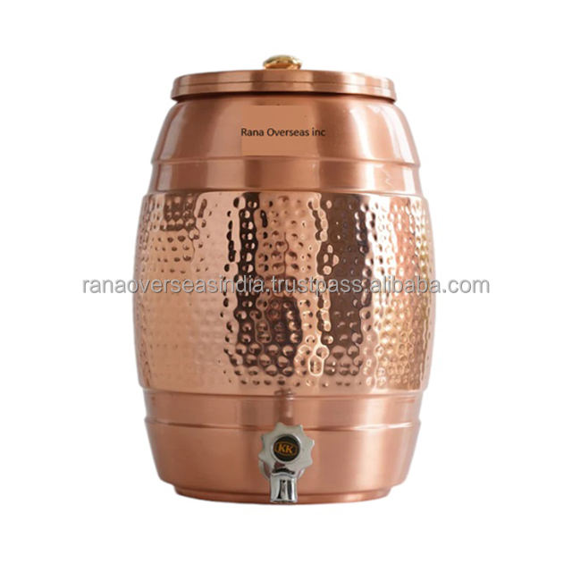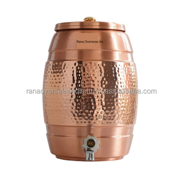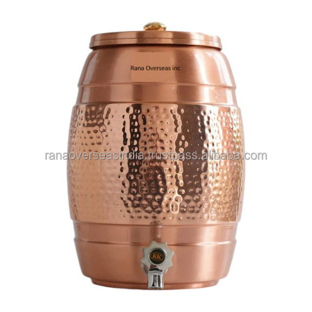 Nueva colección, tanque dispensador de agua de cobre Chapado en laca con diseño de martillo de grifo de acero, olla de almacenamiento de agua de cobre para uso doméstico