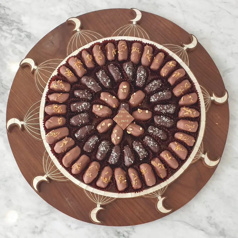 Pastelería de chocolate de madera soporte MOP bandeja con incrustacionesNombre del producto