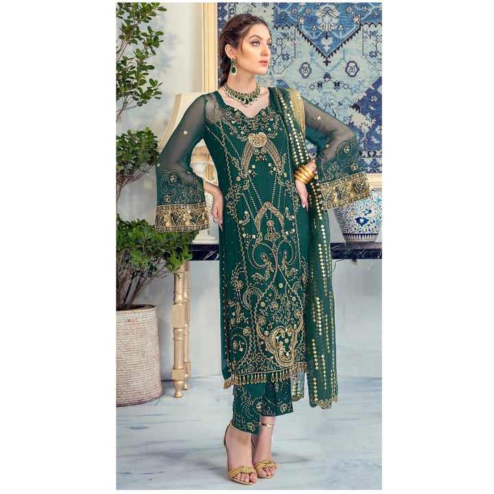 Nueva colección de trajes Georgette paquistaníes adornados con exquisito bordado trabajo Salwar traje para ocasiones festivas como Eid