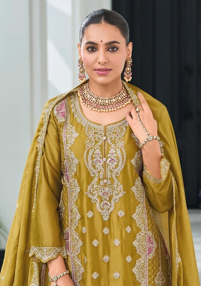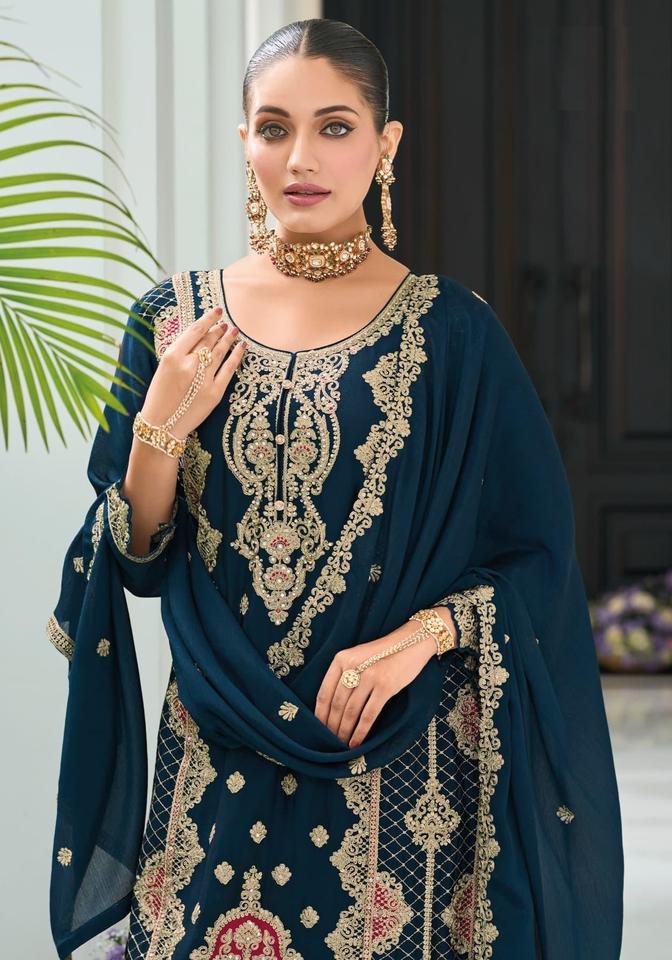 Fuente Directa de la Nueva Colección Dhwaja Export: Salwar Kameez con Bordado Chinon Auténtico, Ropa de Fiesta India y Pakistaní, Preconfeccionada