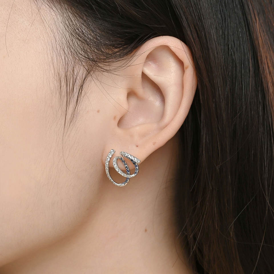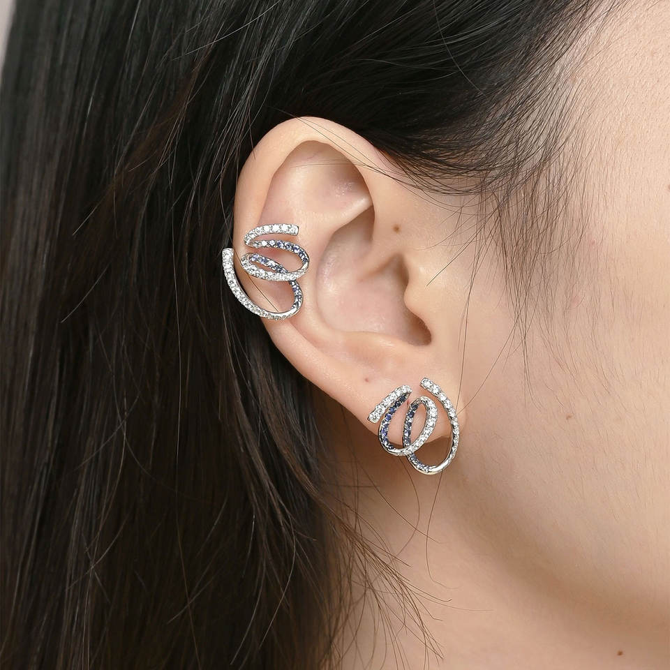 Nueva Colección, Pendientes de Oro Blanco Sólido de 18K con Diseño Curvo Moderno, Diamantes Naturales y Zafiro Azul, Regalo para Mujer