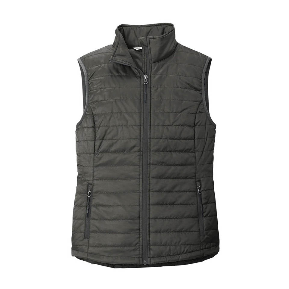 Nueva colección de chaleco gris con capucha de piel sintética para mujer, chaleco acolchado de peso medio para mujer