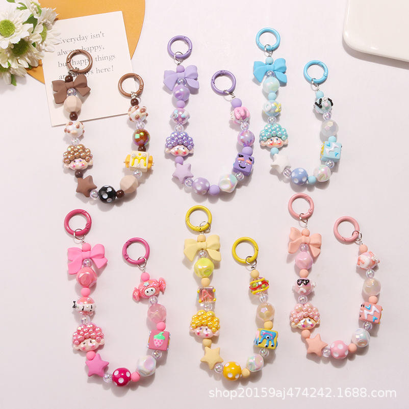 Nuevo colgante de llavero de cadena de cuentas pintado a mano de acrílico Chapado en Color, funda de auricular fresca y bonita, decoración de bolsa de pareja