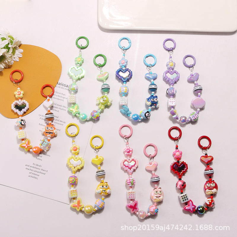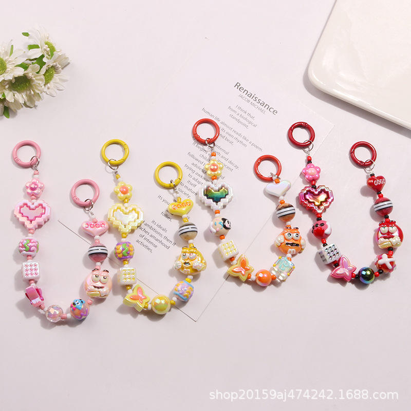 Nueva muñeca de dibujos animados bonita chapada en Color, cuentas pintadas, Chai Keychai Pedat Buildig Block Style, bolsa de accesorios de corazón