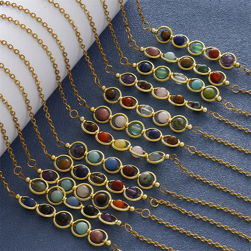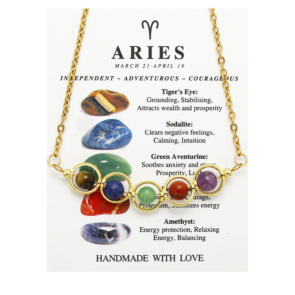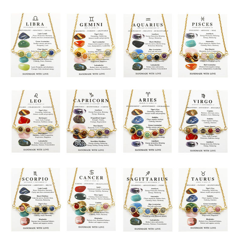 Nuevo colorido 12 signos de constelación collar de cuentas de piedra de acero inoxidable amatista guisante vaina collar de cadena de clavícula