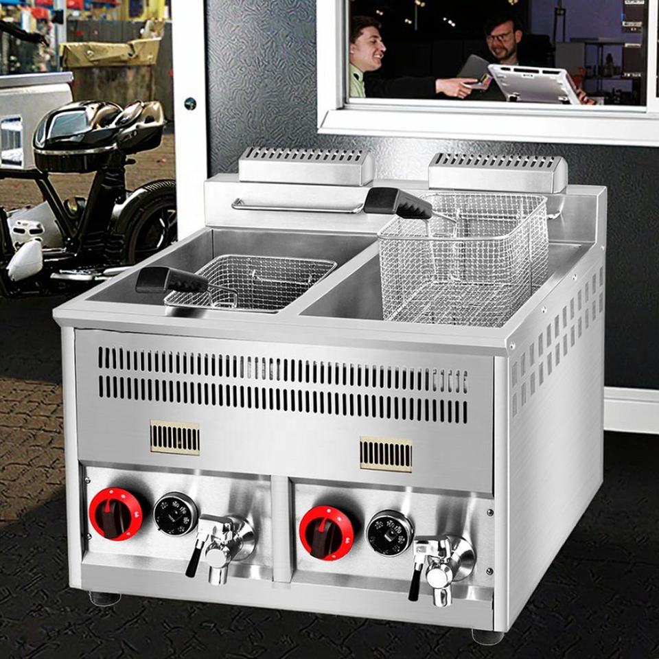 Freidora Comercial de Gas para Pollo y Papas Fritas, Motor de 3000W, Freidora Industrial con 1 Año de Garantía para Hoteles