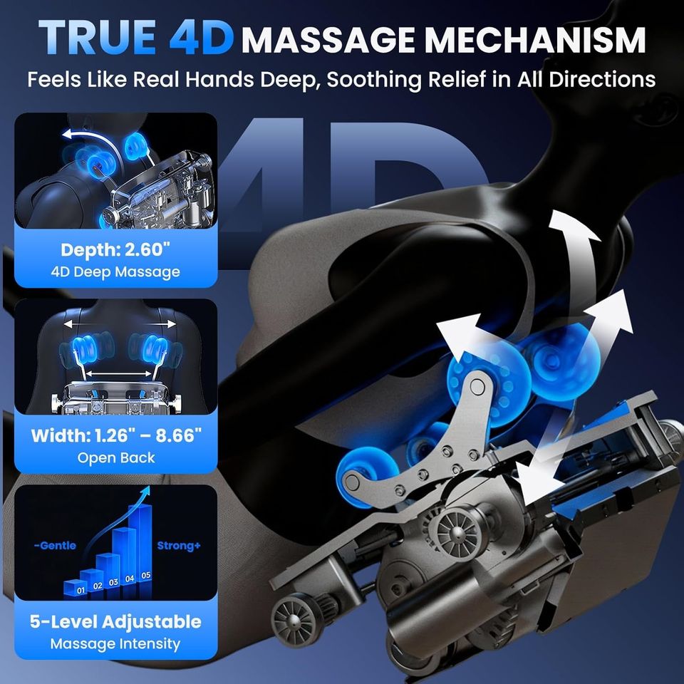 Portátil, gravedad cero, Plegable, Vibración, Masaje del pie, manipulador 4d, compresa caliente, seguimiento sl masaje, control de voz inteligente, sistema bluetoothCaracterística