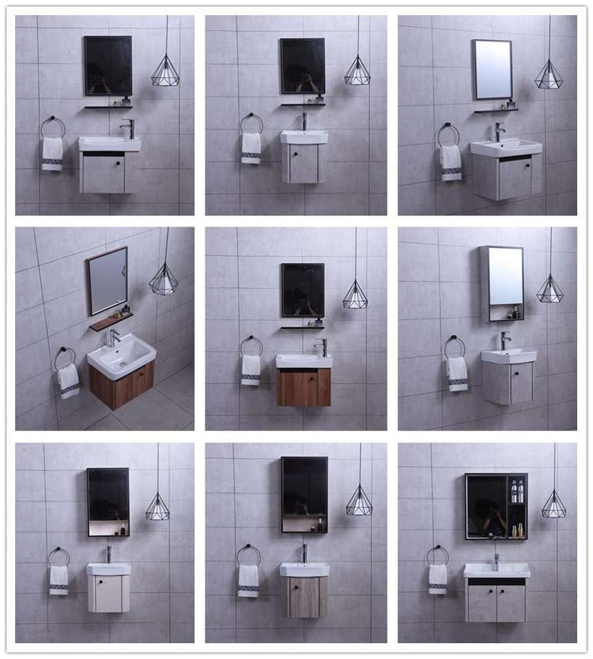 Nuevo Mueble de Baño Compacto y Pequeño de PVC Impermeable con Espejo y Lavabo para Apartamento