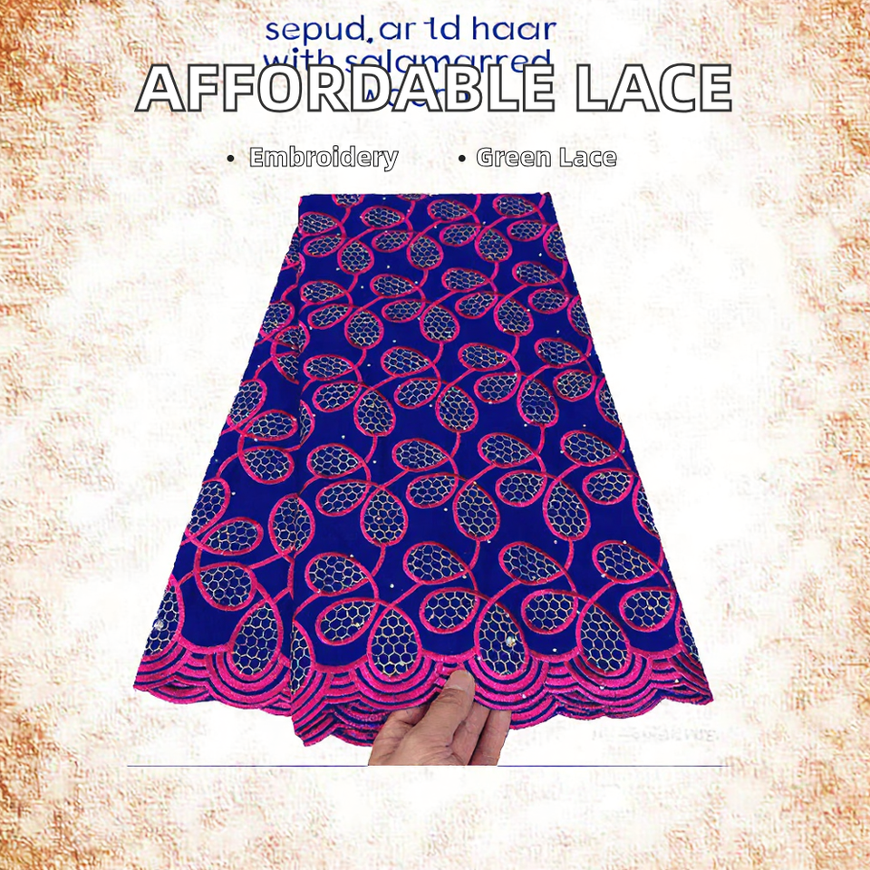 Nuevo Precio Competitivo, Tela de Encaje Smeeda Ecológica 100% Algodón con Bordado de Pedrería, 51-52 Pulgadas de Ancho, Velo para Vestido Africano
