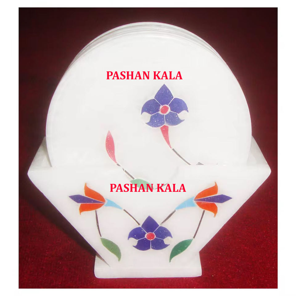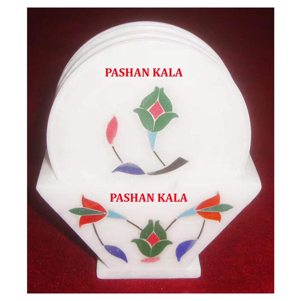 Nuevo Juego de Posavasos de Mármol Blanco con Diseño Creativo Indio Hecho a Mano para Decoración del Hogar y la Cocina