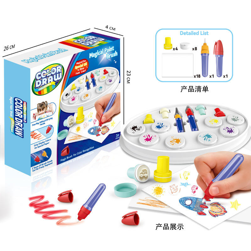 Nuevo pincel de pintura mágico educativo creativo para niños, dibujo para colorear, sello de pintura gratis, juguetes de juego de arte DIY para regalo de niños