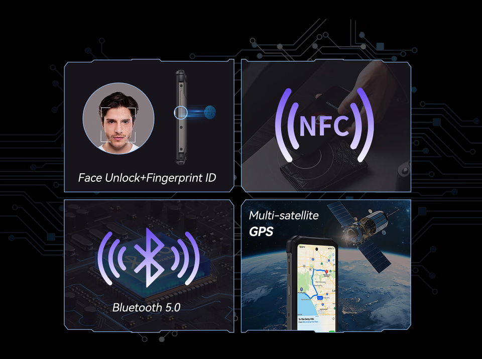 Doble tarjeta SIM, Impermeable, Carga rápida, A prueba de golpes, Cámara de belleza, NFC, Huella dactilar, Control de gestos, Reconocimiento facial, Wireless charge