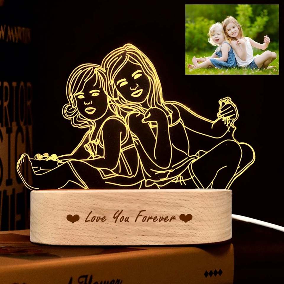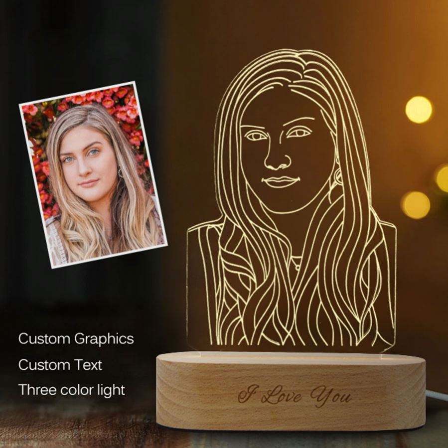 Nueva Lámpara de Noche Acrílica 3D Personalizada de 3 o 1 Colores, Estilo Dibujo Lineal, para Regalo de Boda/San Valentín/Día de la Madre/Navidad/Familiar