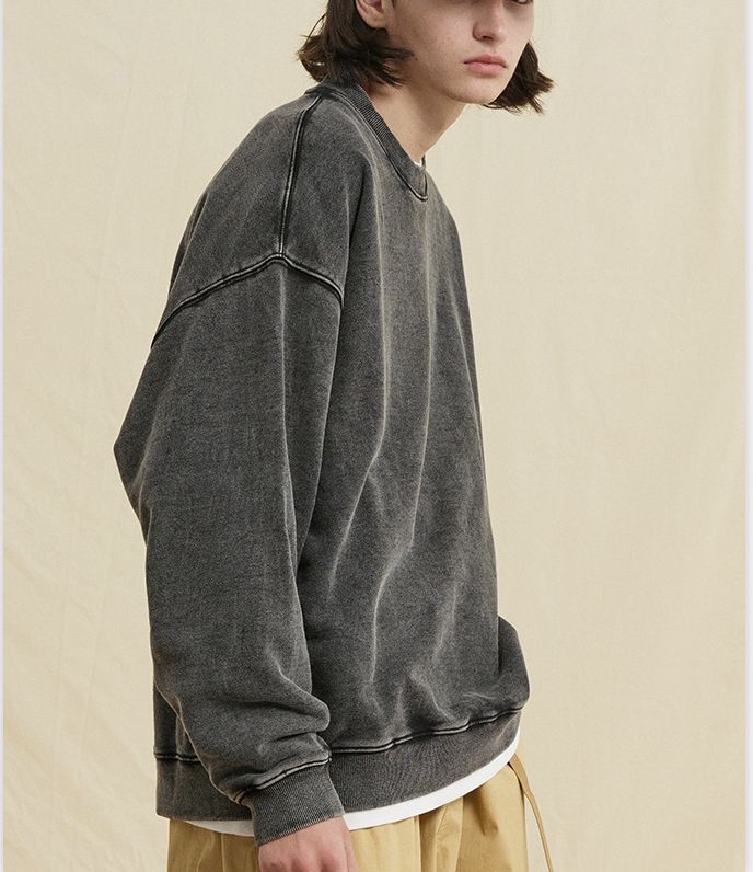 Nueva sudadera personalizada con lavado ácido para hombre, jersey de cuello redondo lavado Vintage de gran tamaño para hombre