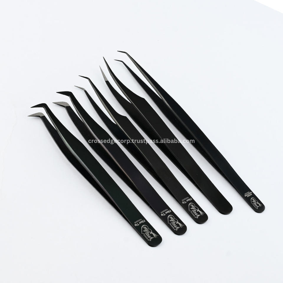 Pinzas para Extensión de Pestañas con Punta de Fibra de Color Personalizado, Curvatura de Luna de 90 Grados, para Aislamiento de Fans de Volumen, Herramienta para Artistas de Pestañas