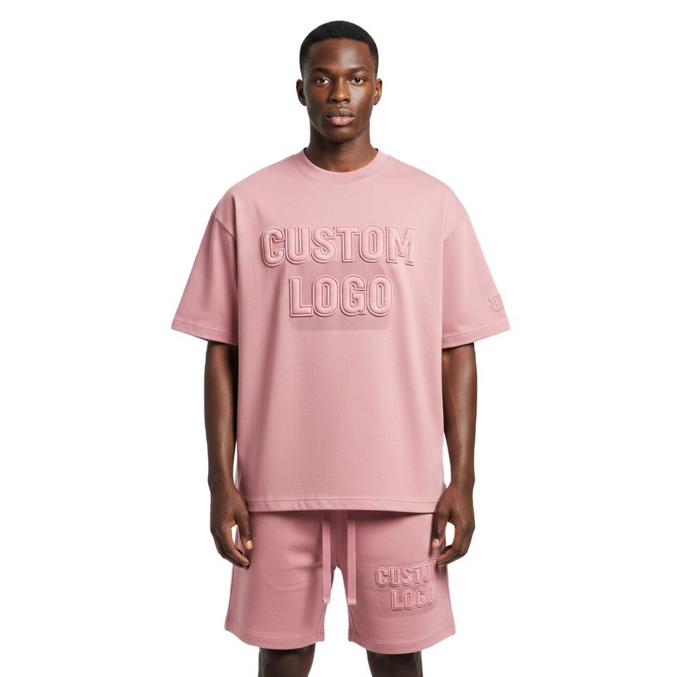 Nuevos conjuntos de camisetas personalizadas con logotipo, lavado ácido, bordado, conjunto de pantalones cortos de algodón para hombre, conjunto de camiseta y pantalones cortos deportivos para hombre