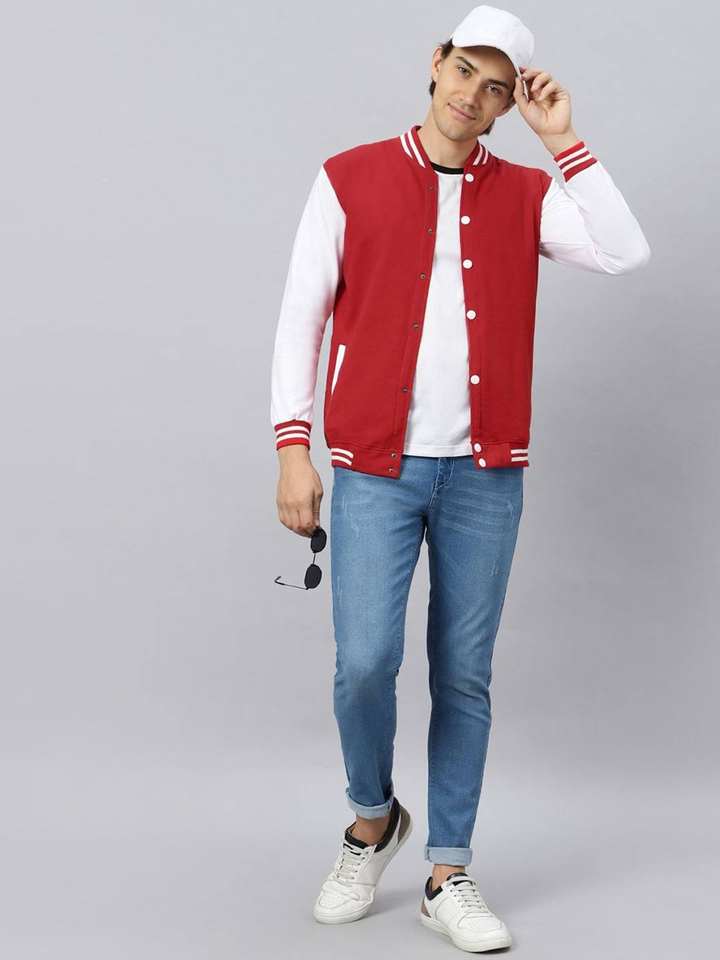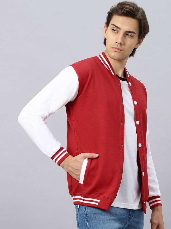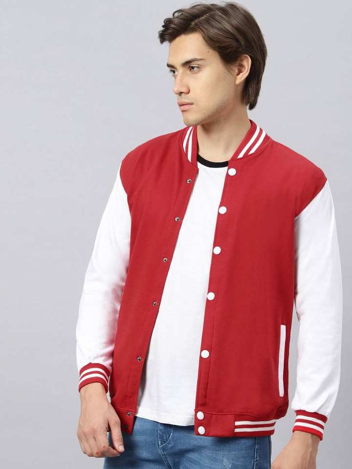 Nueva chaqueta universitaria de lana roja de diseño personalizado para hombre, cierre de botones, bolsillos interiores, chaqueta de invierno Bomber de béisbol universitario Letterman