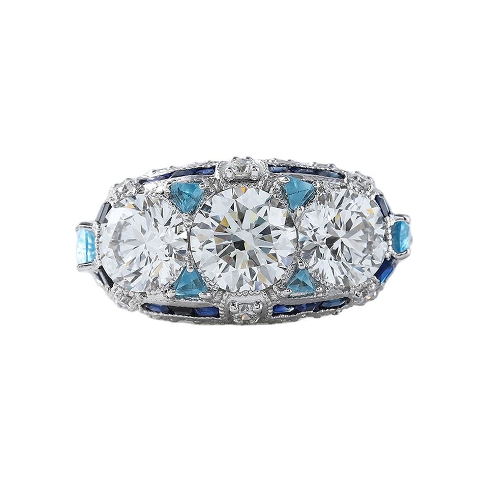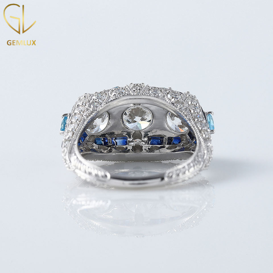 Anillo de compromiso de diamante cultivado en laboratorio de corte redondo de tres piedras de inspiración vintage de nuevo diseño personalizado, anillo antiguo Milgrain para mujer