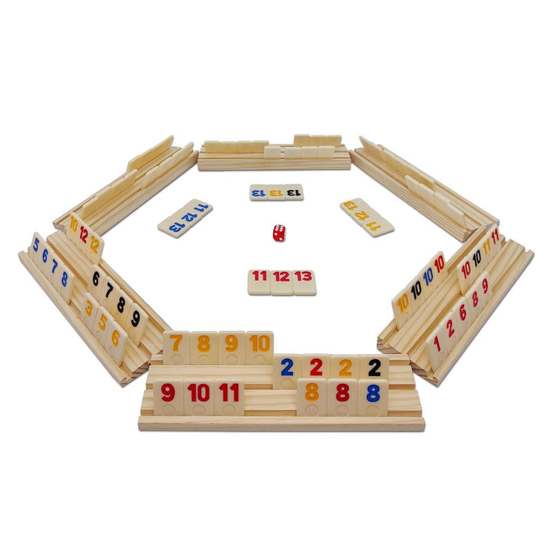Nuevo juego de azulejos de Rummy de madera Diy personalizado, juego de Rummy de melamina con estantes de madera en la mesa Rummy de Professional