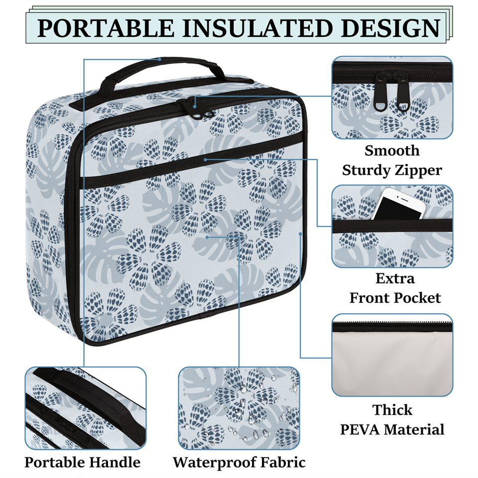 Nueva Bolsa de Almuerzo Personalizada con Diseño Tropical Hawaiano de Palmeras y Monstera, Tejido de Sarga Compuesta, Impermeable, Duradera y Aislada
