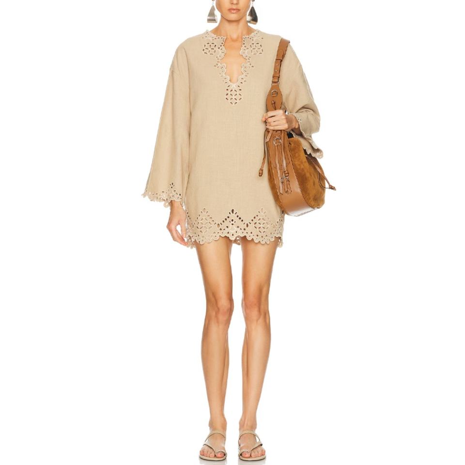 Nuevos Vestidos de Primavera Personalizados de Alta Calidad, Vestidos Casuales Holgados, Vestidos Largos con Mangas Largas y Grabado Láser, Mini Vestidos de Popelina de Algodón