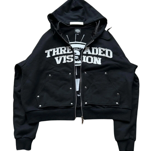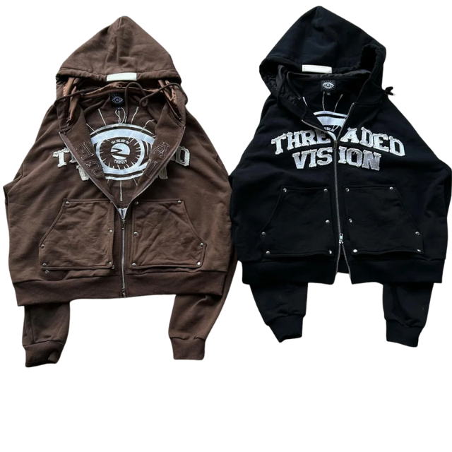 Nuevo personalizado último estilo pulóver doble bolsillo hombres desgastado bordado parche Zip Up ácido lavado sudaderas con capucha