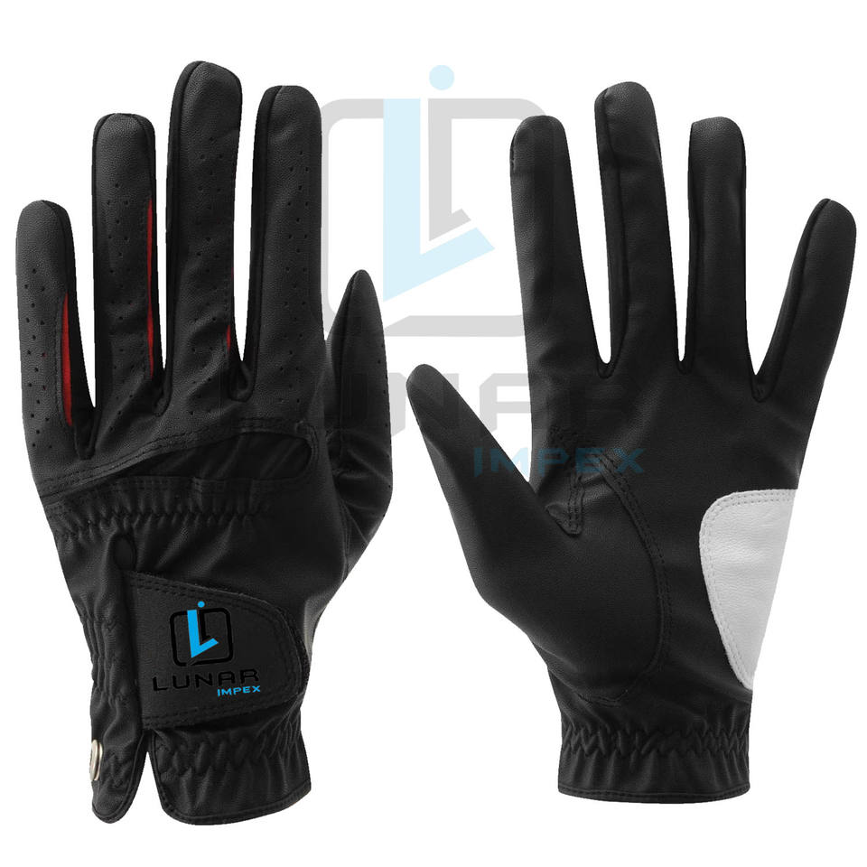 Nuevo personalizado mano izquierda para hombre duradero antideslizante suave Cabretta cuero negro Golf Grip tamaño Regular Touch & Close Strap GUANTES DE Golf